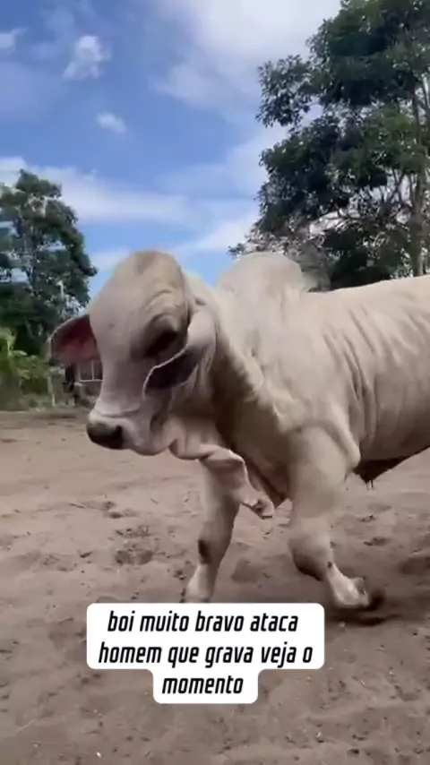 boi muito bravo ataca homem que grava veja o momento
