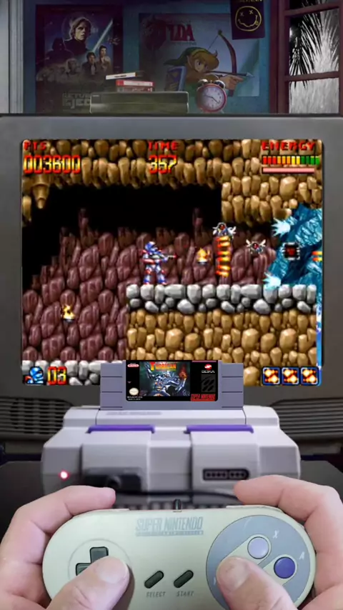 Super Turrican no Super Nintendo Quem mais aí também já jogou esse Game? Ele um jogo de tiro e o quinto da série Turrican Ele foi desenvolvido pela Factor 5 e publicado pela Seika. O jogo apresenta apenas 4 mundos e termina com o chefe alienígena inspirado em H.R. Giger. #NostalgiaGamer #JogosClássicos #anos90 #nostalgia #SuperNintendo