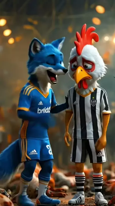 Mascote do Cruzeiro tira onda com mascote do Atlético Mineiro. #Cruzeiro 741 atleticomineiro#raposa galodoído#memefutebol @Cruzeiro @Atlético