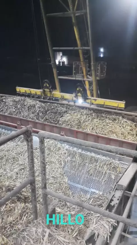 processo de moagem de cana de açúcar, carregamento das mesas transportadoras ,elevador hillo em tombando da carroceria da carreta!. #usinadealcooleaçucar #eletrica