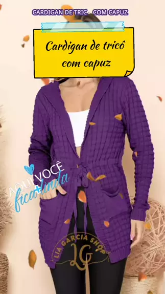 Cardigan de tricô com capuz e bolso #baoprakwai #viraliza #roupasfemininas #modafashion #cardigan