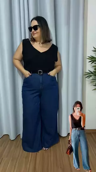 Look plus size elegante, look plus size com wid leg jeans #MODA #plussize #fy #viral #foryou