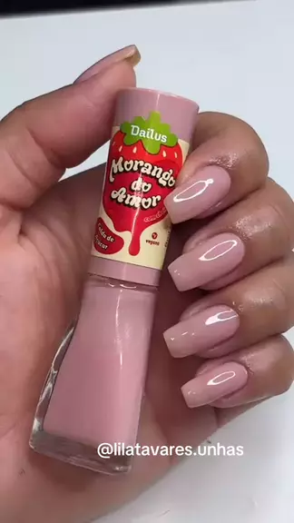 Esmalte “Calda de Açúcar” Dailus 🍓. Coleção “Morango do Amor”🍓 Passei 2 camadas. Os esmaltes dessa coleção tem cheirinho 😍. . . . . . #esmaltesdailus #dailus #morangodoamor #manicure #lilatavaresunhas