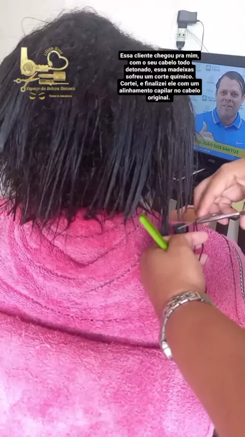 Cliente que chegou arrasada, e saiu muito satisfeita, Com um sorriso de orelha à orelha 🥰 Obs: Essa cliente chegou pra mim, com o seu cabelo todo detonado, ele tinha sofreu um corte químico, fiz um corte nele, na parte debaixo, ja não tinha mais aquela madeixas comprida, ja tinha sofrido o corte químico, retirei toda essa parte, que já tava liza, e apliquei um alinhamento capilar, na madeixas onde estava com o cabelo original, na parte onde ficou a química anterior, passei outra prancha em t