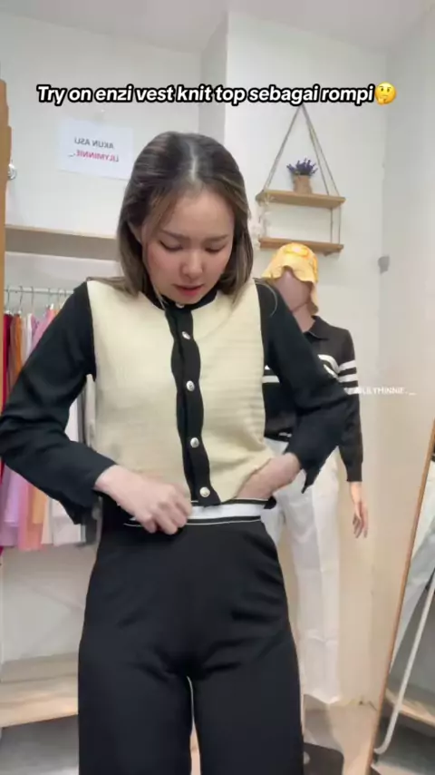try on enzi vest knit top dipakein kemeja blouse lengan panjang, suka? # #fashioninspo #koreanstylefashion #koreantop #knittop #knitvest #vestrajut #premiumknit #knitwear