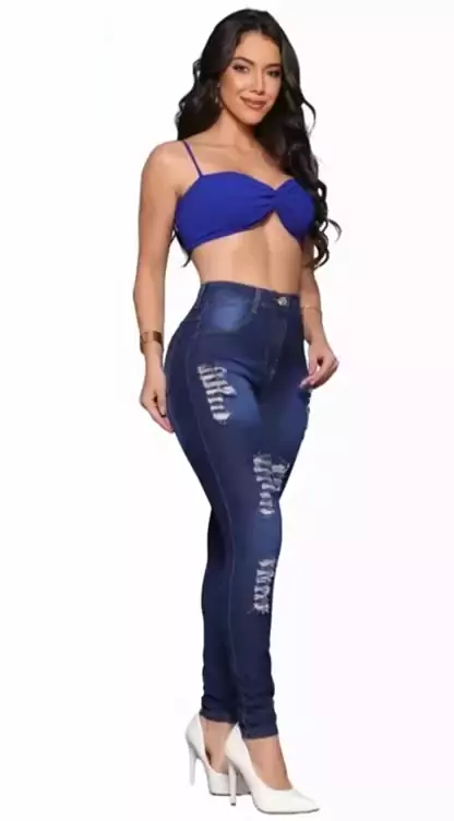 Calça Jeans Feminina Devore Escura Com