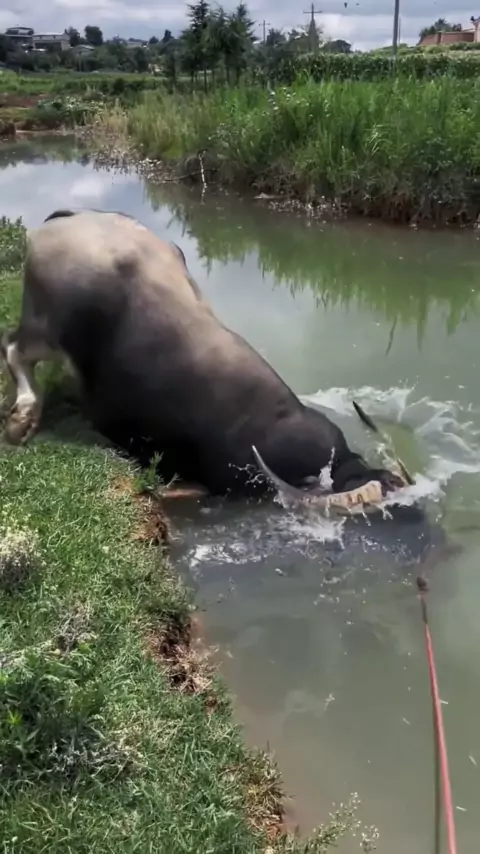 Este é um búfalo que não sabe nadar.