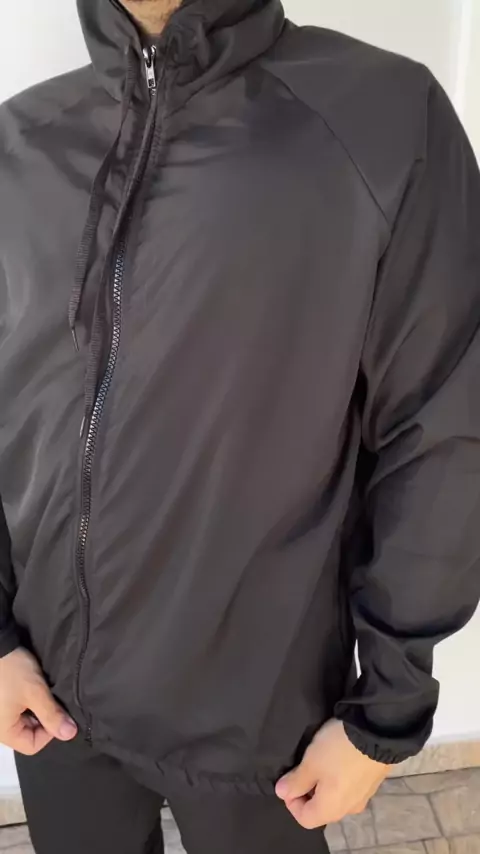 Corta Vento Masculino Jaqueta Impermeável Capuz Semi Forrada Preto