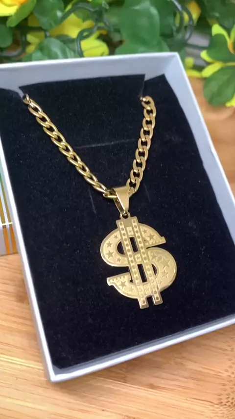Corrente Cordão Masculino Com Pingente Cifrão Banhado A Ouro