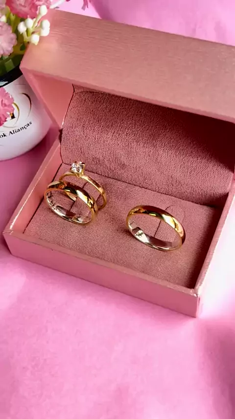 Par Alianças 6mm Casamento chanfrada + Anel Solit