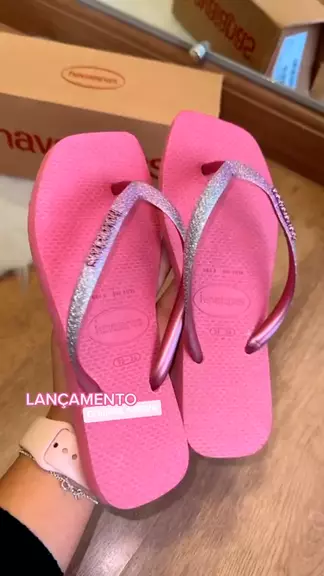 Chinela feminina linda havaiana quadrada