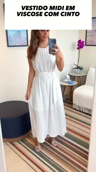 vestido midi em viscose com cinto #MODA #looks #fashion #kwaimoda #outfits