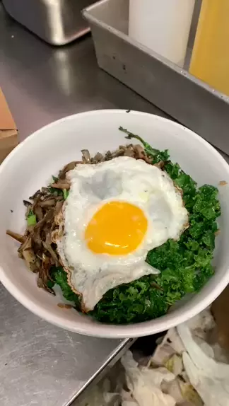 Vegetarian Kale & Hen of the Woods Mushroom bowl with a fried egg! π₯¬π³ #vegetarian #kale