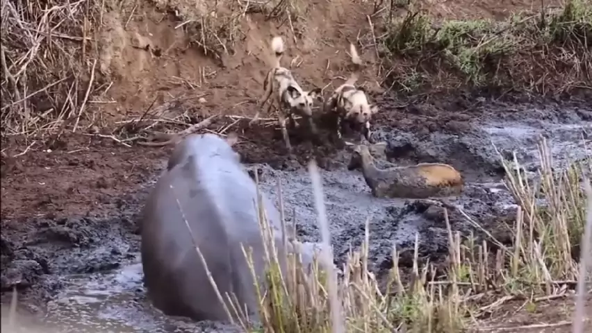 O hipopótamo ajudou a hiena.