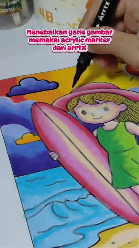 Menebalkan garis gambar memakai produk dari arrtX.#mewarnailangit#mewarnaipemula#juara1lombamewarnai#gradasiwarna#mewarnaipantai