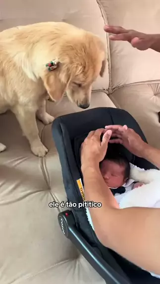 O GRANDE MOMENTO CHEGOU 🥰 #goldenretriever #bebe #babyanddog