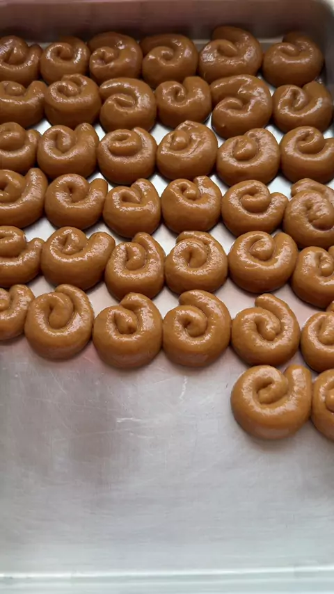 Receita de bolacha de açúcar 1 xícara de açúcar 1 xícara de leite 2 ovos 1 colher de sopa de bicarbonato de sódio 2 colheres de sopa de margarina 1 colher de sobremesa de canela Farinha de trigo até dar o ponto em média 600g Agora só seguir @#tropadoparedão #penelopedaroca