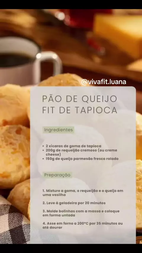 🧀✨ Quer matar a vontade de pão de queijo sem sair da dieta? Conheça o Pão de Queijo Fit de Tapioca — crocante por fora, macio por dentro e 100% sem culpa! 😍
