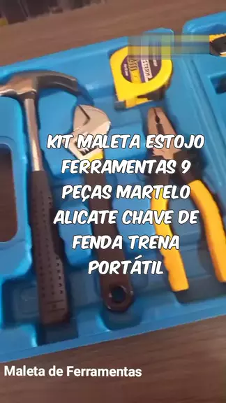 Kit Maleta Estojo Ferramentas 9 Peças Martelo Alicate Chave de Fenda Trena Portátil
