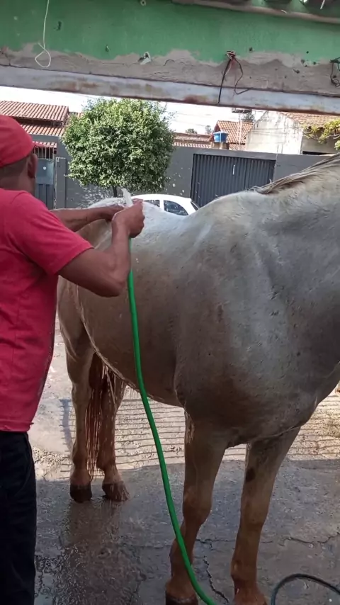 um banho no meu cavalo coiote🐎