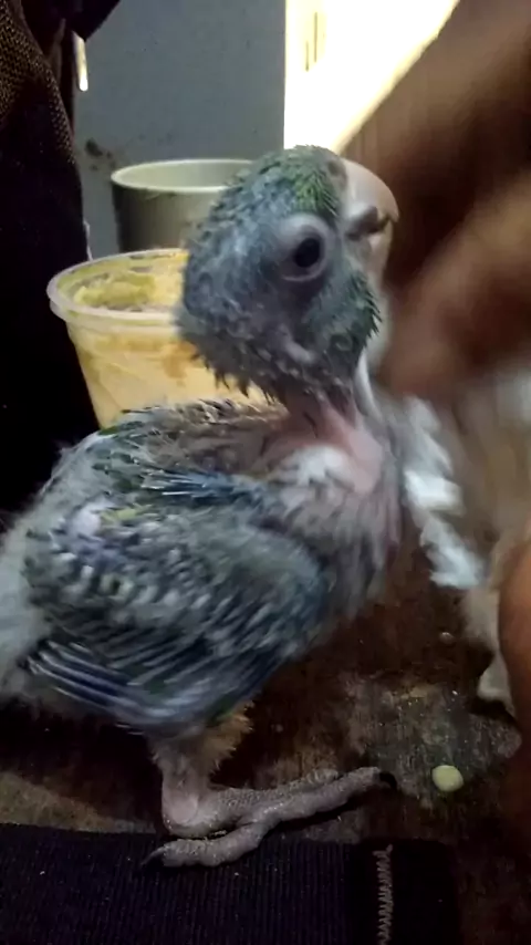 alimentando filhote de maritaca