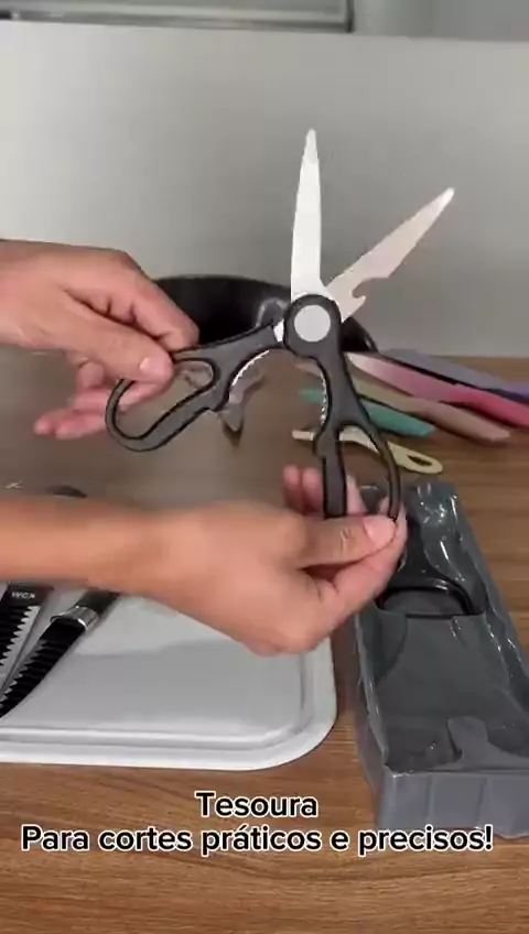 Jogo de Facas Preta - 6pçs com tesoura inox #KwaiChef #maisviews #cozinha #satisfatório