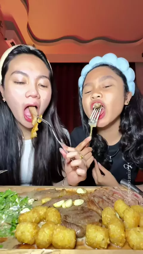 Bener bener berputar ditenggorokan🫷🏻🥩🥵🤏🏻 @Agn&yolan✅ #agnesstania #agnesyolan #makan#steak #mukbang