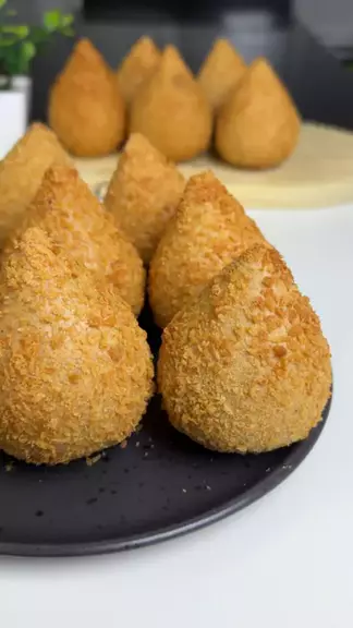 Coxinha de costela com cream cheese Ingredientes 1kg e meio de costela Fio de óleo Sal Pimenta do reino Chimichurri 2 folhas de louro 3 dentes de alho 1 cebola 1 tomate Pimentão Água para cozinhar Massa 1 litro do caldo Se precisar sal 600g de farinha de trigo Cream cheese para rechear Para empanar 1 ovo Leite Farinha panko ou farinha de rosca Modo de preparo: no vídeo
