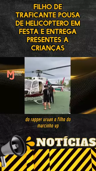 Filho de traficante pousa de helicóptero em festa e entrega presentes a crianças. Fonte: Oeste Sem Filtro. #noticias #FamíliaAjudandoECrescendo