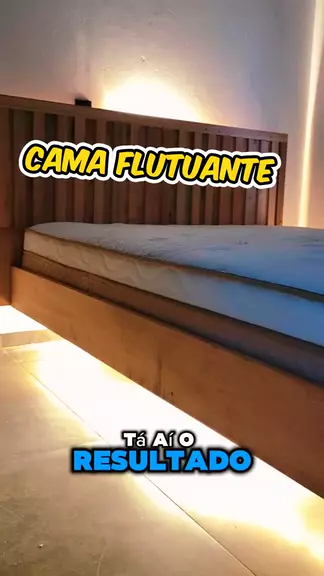 Cama flutuante de madeira feita de forma simples e artesanal e com led