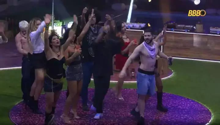 Cria do Corpo de Dança Caprichoso, não podia ser diferente, né? Faz os passos e a casa acompanha… 🪇💃🏽 já tá treinando o séquito dela pra Parintins E aí, estão gostando da festa do Cowboy? 🤠 #TimeMarciele #MarcieleNoBBB26 #MarcieleMunduruku