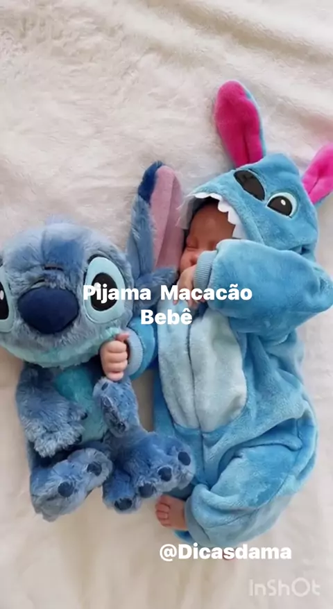 Pijama macacão bebê stitch #PijamaBebê #StitchFofo #LookDoSoninho #BebêEstiloso #roupainfantil