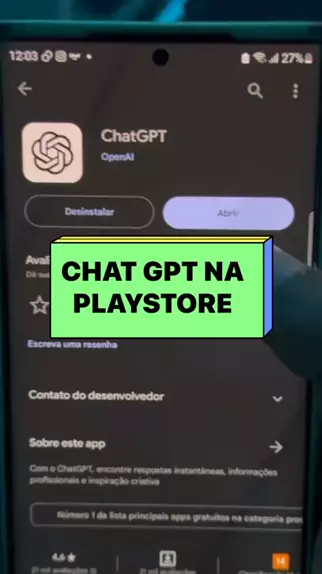 Chat GPT já está disponível na playstore! #ChatGPT #InteligênciaArtificial #AssistenteVirtual #IA #AppDeLinguagemNatural
