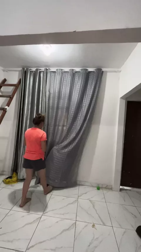 Colocando as cortinas da sala