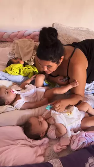 Mocinha mãe de trigêmeos