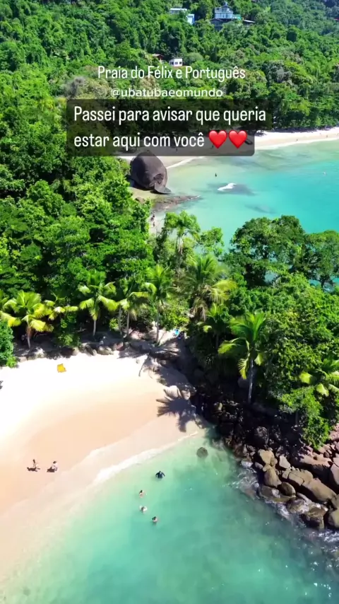 "As praias do Félix e Português em Ubatuba são verdadeiros tesouros litorâneos, onde a natureza exuberante se encontra com águas cristalinas e paisagens de tirar o fôlego.😻🏖️🌴🌊 #paraiso #Destinos #Viagens #qualidadedevida #lugarlindo