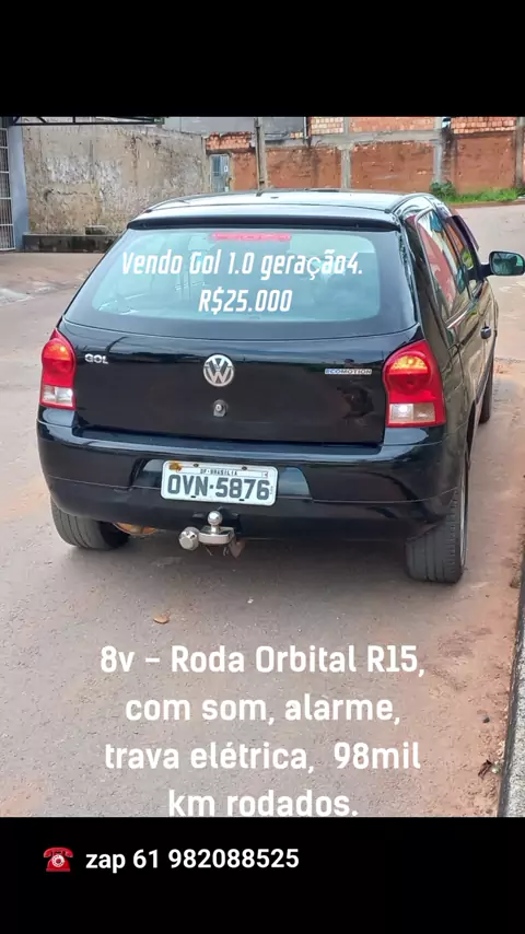 Vendo Gol 1.0 geração 4. valor:25.000 8v - Roda Orbital R15, com som, alarme, trava elétrica, ar quente e desembaçador, 98mil km rodados, estofado em bom estado, troca de óleo e filtros recente, suspensão dianteira feita recente. Motor em boas condições. #carro #vendocarro #carrogol