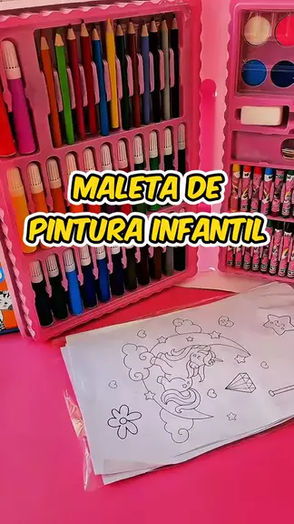 Kit Com 24/48/68/86/150 peças Maleta de Pintura Infantil Azul Dinossauro OU Rosa Unicórnio para Colorir Desenhar e Explorar a Criatividade Crianças