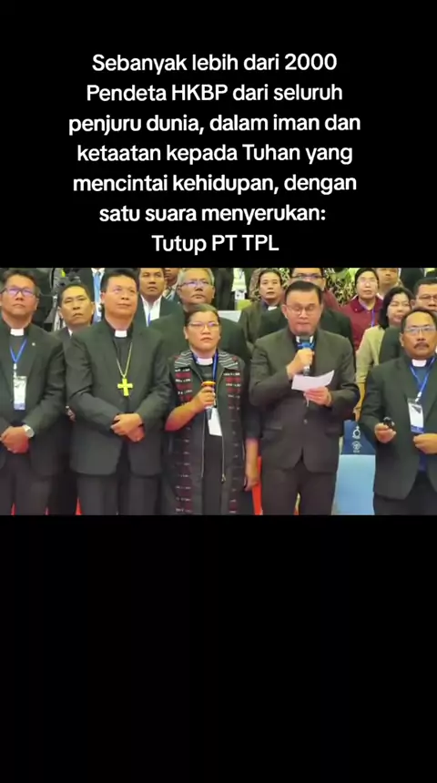 Copas : Pdt Victor Tinambunan... Sebanyak lebih dari 2000 Pendeta HKBP dari seluruh penjuru dunia, dalam iman dan ketaatan kepada Tuhan yang mencintai kehidupan, dengan satu suara menyerukan: Tutup PT TPL. Seruan iman ini disampaikan di bagian akhir video, dan dibacakan atas nama seluruh Pendeta oleh Ketua Rapat Pendeta, Amang Pdt. Maulinus U.W. Siregar, M.Th, bersama Praeses Pdt. Rintalori Sianturi. Kami sangat berharap, yang terhormat Bapak Presiden Prabowo Subianto, mendengar dan mengabulkan...