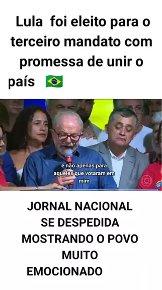 • Neste domingo (30), Luiz Inácio Lula da Silva (PT) foi eleito para um terceiro mandato, com a promessa de unir o país. Que venham tempos de paz para todos. O Fantástico se despede com a emoção do povo nas ruas, celebrando a vitória de Lula. #lula #Eleições2022 #Notícia #politica #autolegenda @Radar Kwai BR(O150000043503131) @Kwai Comentário(O150001239356199) @Kwai Brasil Oficial(O558843093)