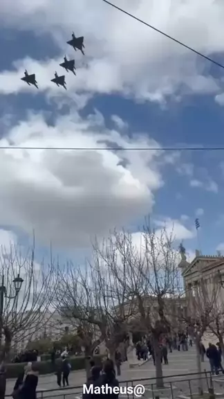 Jatos F-16 e helicópteros Chinook sobrevoam Atenas em 25 de março. Uma impressionante demonstração aérea aconteceu no centro de Atenas, com jatos de combate F-16 e helicópteros CH-47 Chinook sobrevoando a cidade durante as comemorações do Dia da Independência da Grécia, em 25 de março de 2026. Multidões se reuniram ao longo das ruas Akademias e Panepistimiou para assistir ao rugido dos F-16, seguidos pelos inconfundíveis Chinooks, facilmente reconhecidos por seu design de rotor em tandem, com um