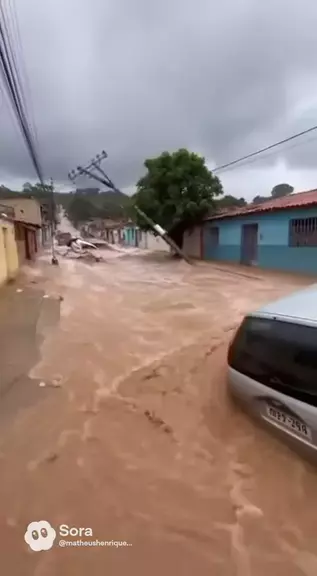 Enxurrada abre duas crateras e carros caem ao vivo — morador filma correndo #viral #chuva #fyp #brasil #noticias