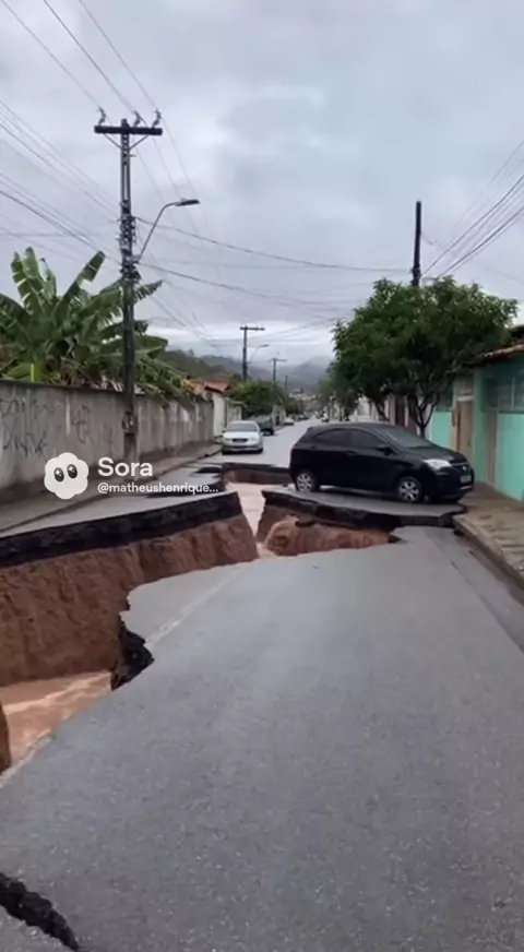 A rua abriu no meio… todo mundo correu.: #desastre #viral #rachadura #impactante