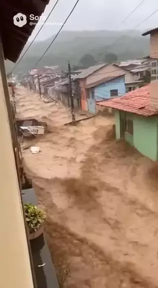 Enxurrada invade bairro e arrasta casas — vizinho registra desespero #viral #chuva #casa #fyp #noticias