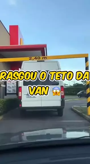 A van era mais alta que a entrada do drive-thru e ele forçou! A barra de ferro rasgou o teto igual papel... Prejuízo gigante 🚐🍔 #DriveThru #Transito #Fail #Acidente #Prejuizo"