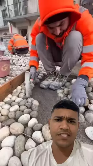 eles colocaram pedrinhas por pedrinhas na calçada de casa!