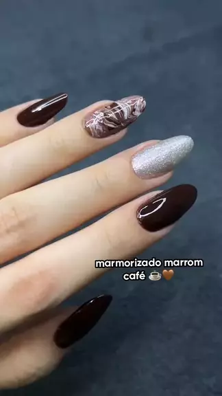 marmorizado marrom café ☕🤎 #nailart #Unhas #nails #figurinha #maisviews