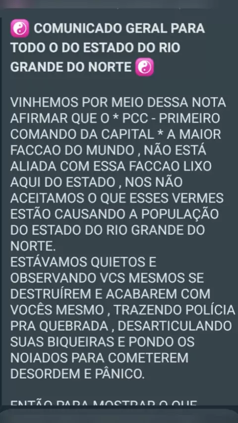 recado da facção rival manda recado para a facção que está aterrorizando o estado do Rio Grande do Norte #SouFãDoZico #LiberadaANoiteToda #melhorversao #segundaeucomeço #FAMILIA_olhodeaguia