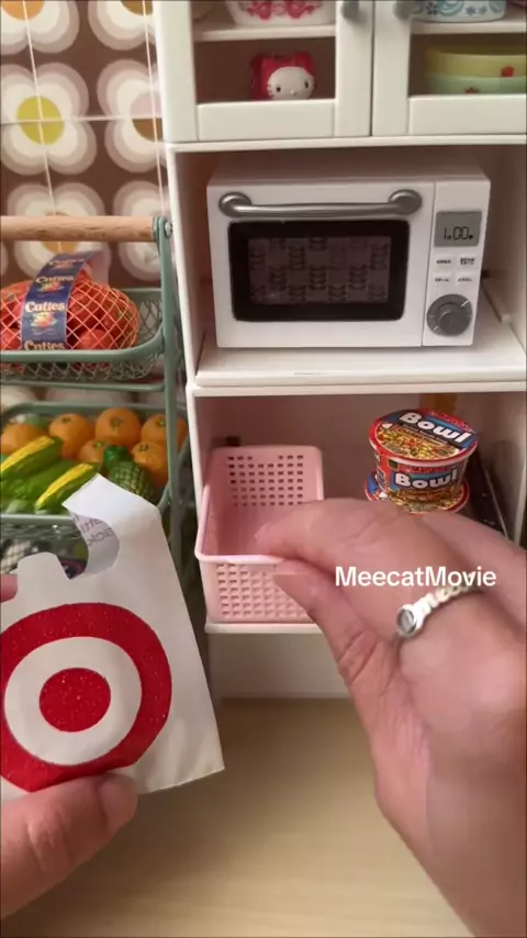 Tiny Target π― ASMR organize with me. Im back from Target with all the cutest & tiniest pasta supplies for my mini kitchen. What should I cook next?π€ All mini food is from @Mini Brands series 5.#ASMRorganize#miniature#toytok#minimitchen#tinykitchen
