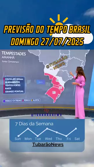 Previsão do tempo no Brasil domingo 27/07/2025, Julho termina com calor em parte do país e expectativa de muita chuva no Sul. Fonte: Jornal Hoje - 26/07/2025 #noticias #ultimasnoticias #PrevisãoDoTempo #meteorológia #brasil